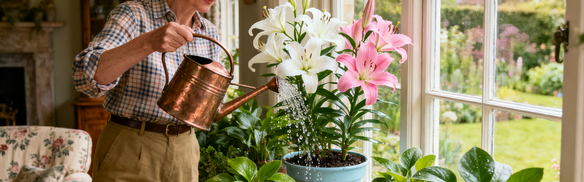 Lily potted plant with buds indoor flowers perfume lily flowering plant desktop ornamental green plants
